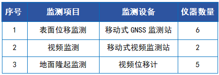 本项目属于施工监测,所用设备采用移动式,会随着施工进程而移动,增加了施工期的便利性和安全性。监测内容为矿山边坡的表面位移监测、视频监测、地面隆起监测,测点布设应结合边坡(或滑坡)分布范围、地形地貌特征、性质、破坏模式、变形情况、稳定状态及主体防治工程类型等综合考虑。