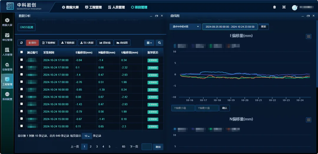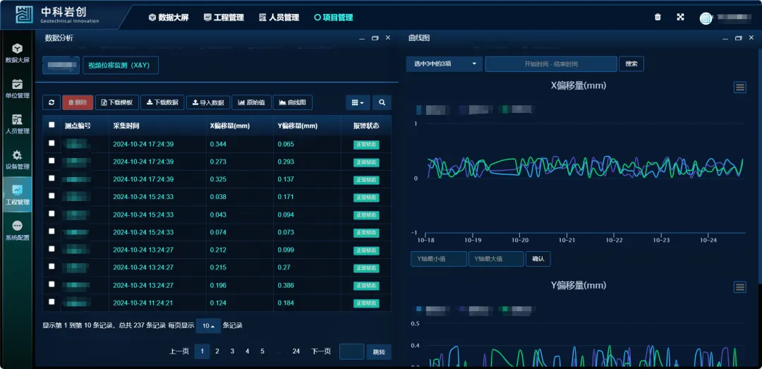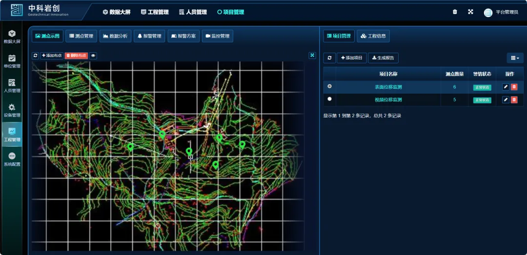 本项目通过岩创可视化云平台观查数据,根据设置报警值,数据变化达到预警值时通过短信、电话等方式及时通知,提供有效预警,使得相关人员可以更加精准地掌握矿山边坡变化情况,构建一个全面的安全监测体系,以确保矿山的安全运行保障工作人员的人身安全和财产损失,我们将持续创新,以提供更有力的技术保障。