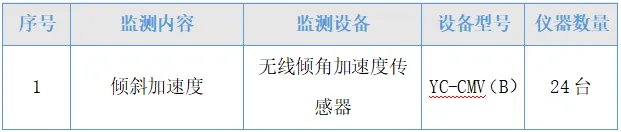 本方案拟布设无线倾角加速度自动化监测点共24个,每个监测点布设如下: