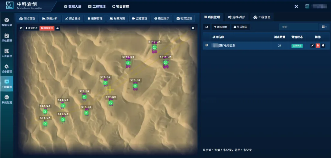 本项目通过岩创可视化云平台观查数据,根据设置报警值,数据变化达到预警值时通过短信、电话等方式及时通知,提供有效预警,提高了煤矿铁塔管理的效率和安全性,构建一个全面的安全监测体系;同时还促进了绿色矿山建设,通过减少生态破坏和环境污染,推动矿业行业的绿色低碳循环发展;我们将持续创新,以提供更有力的技术保障。