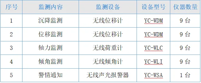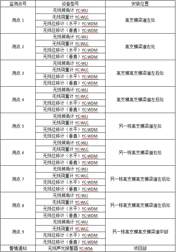 本方案拟布设高支模自动化监测点共9套37个,每个监测点布设如下:
