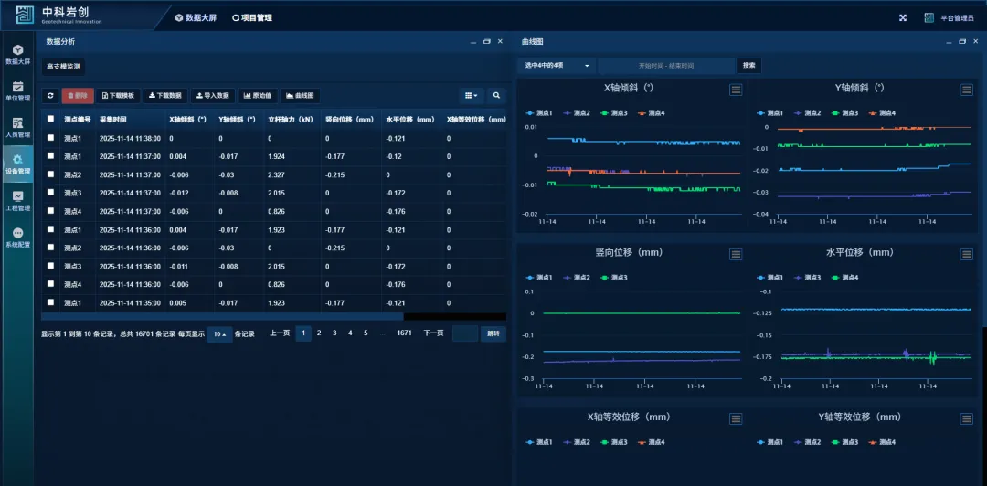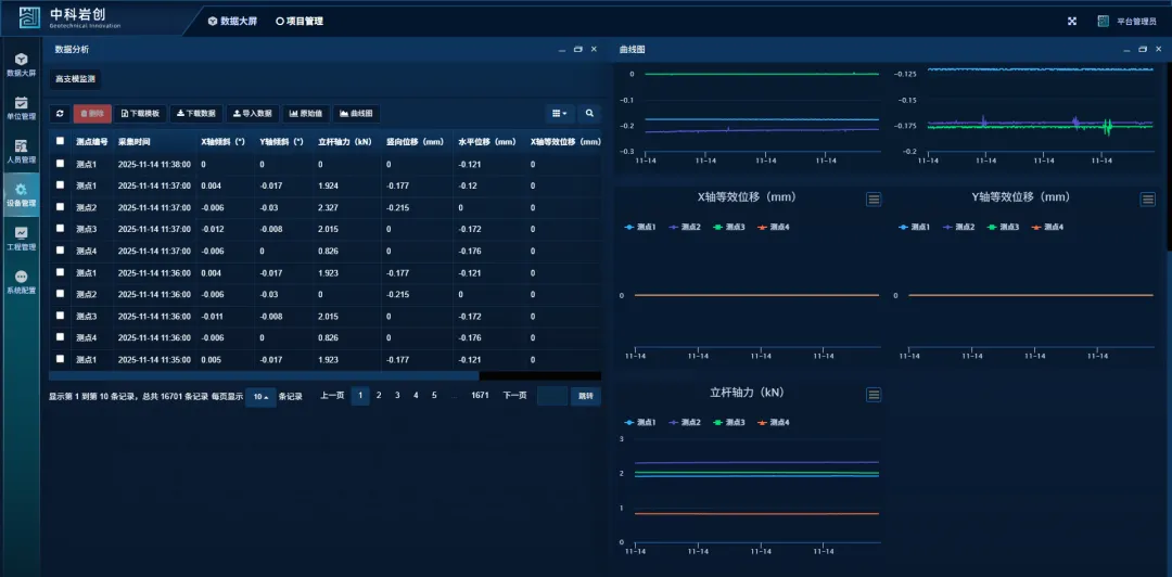 本次高支模自动化监测工作已顺利完成并达到预期目标。在整个监测周期内,系统运行稳定,数据采集精准,成功构建了覆盖全作业区域的实时安全监测网络。通过对支撑体系轴力、位移、倾角等关键参数的持续监测,有效保障了高支模体系在混凝土浇筑及养护期间的结构安全。