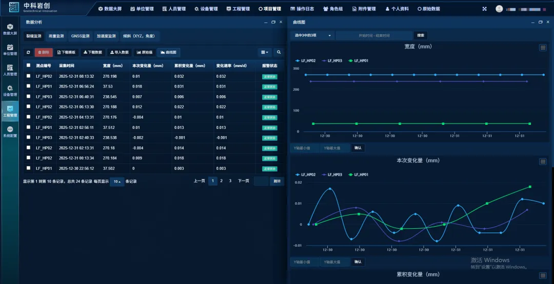 本项目通过岩创可视化云平台观查数据,根据设置报警值,数据变化达到预警值时通过短信、电话等方式及时通知,提供有效预警,提高了边坡管理的效率和安全性,构建一个全面的安全监测体系;同时还促进了绿色边坡建设,通过减少生态破坏和环境污染,推动光伏行业的绿色低碳循环发展;我们将持续创新,以提供更有力的技术保障。