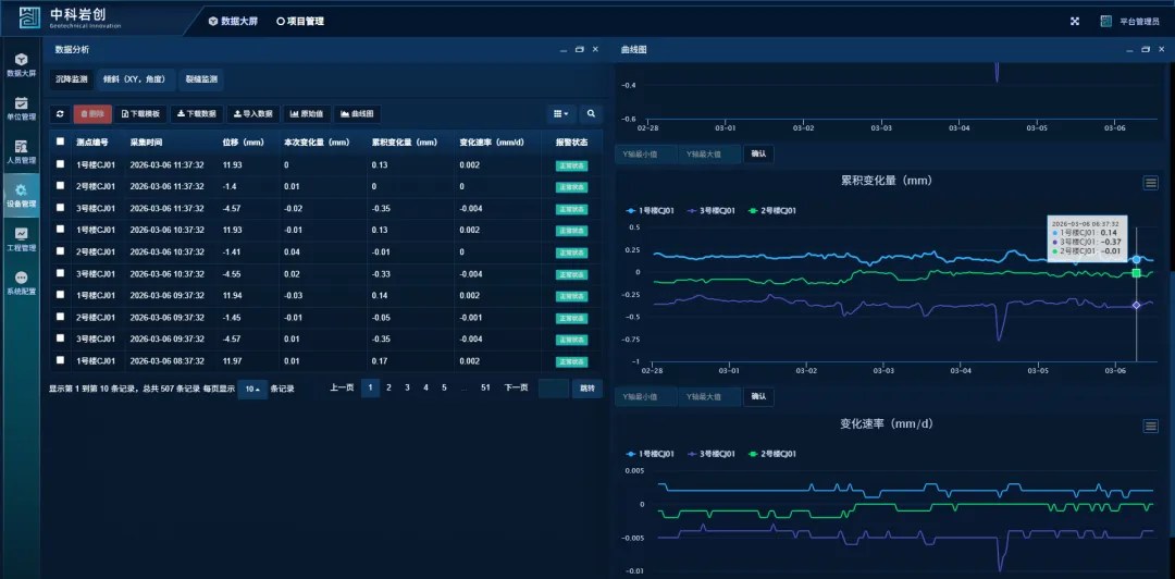 本次建筑物安全自动化监测工作已顺利完成并达到预期目标。在整个监测周期内,系统运行稳定,数据采集精准,成功构建了覆盖全作业区域的实时安全监测网络。通过对支撑体系位移、倾角等关键参数的持续监测,有效保障了建筑物施工、运营期间的结构安全。