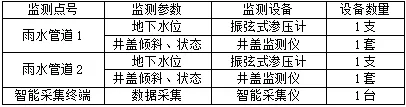 本方案拟布设排水管网监测区域2块,由两个雨水管道组成,每一个雨水管道配备一个渗压计和一个井盖监测仪,每个监测点布设如下: